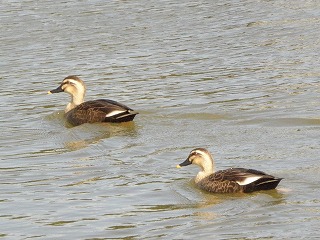 【左】ダイサギ         【中】カルガモ          【右】上、ヒドリガモ。下、ハシビロガモ