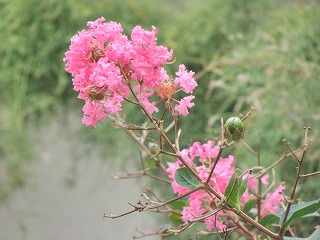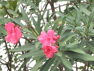 【左】ツユクサ、きれい        【中】キョウチクトウ(栽)。猛毒だから口に入れないで       【右】サルスベリ