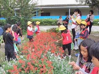 【左】この白い花、いい匂いがするよ。(ジンジャー)       【中】サルビヤの蜜、美味しいよ      【右】最後のまとめ・反省