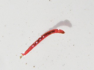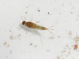 【左】コガタカゲロウ       【中】ユスリカの幼虫(アカムシとして釣りの餌にします)       【右】ハグロトンボの幼虫
