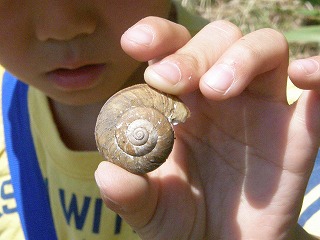 【左】サクラの実を試食        【中】クワの実を試食         【右】カタツムリ、発見。イセノナミマイマイ