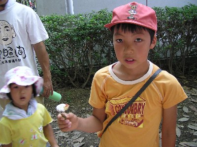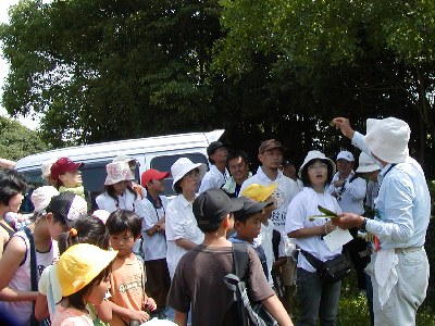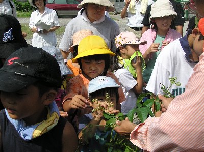 【左】「ナツメの葉っぱをかじってあめを舐めてごらん。あめが甘く感じないよ」