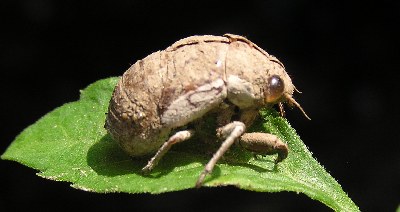 【左】ニイニイゼミの抜け殻です。泥が付いているのが特徴です。