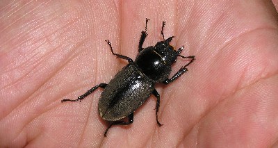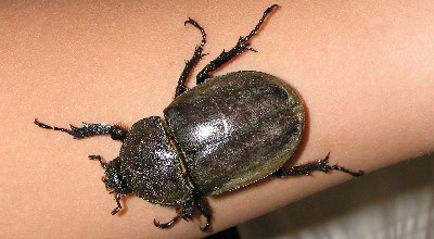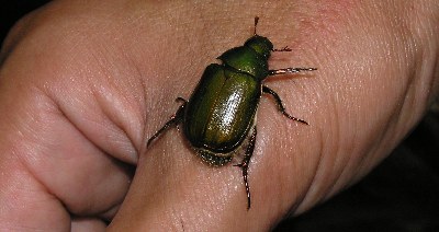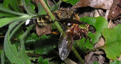 【左】シオヤアブがアオドウガネを捕らえ、体液を吸っています。この出会いに感激しました。