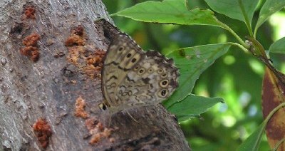 【右】サトキマダラヒカゲです。ジャノメチョウの仲間で、竹やササを食べます。