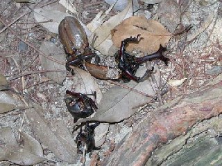 【左】鳥に食べられた直後でしょうか、カブトムシの角が動いていました。