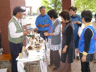 【左】1階の案内テーブルで内容の説明をしています。
