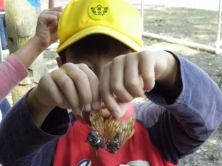 板山小学校3年生が理科の単元にある「昆虫を調べよう」「植物を育てよう」目指して校内を散策しました。子供たちはじかに自然と触れ合うことによって生き生きと活動することが出来ました。今回、観察できた生き物を出来るだけ写真に収め、掲示することにしました。これを見ていただき、もう一度どんな生き物がいたか振り返ってください。また、今回見られた生き物たちがどのように変わっていくかをながめていただきたいと思います。(記・降幡)