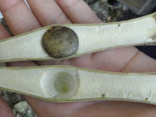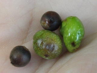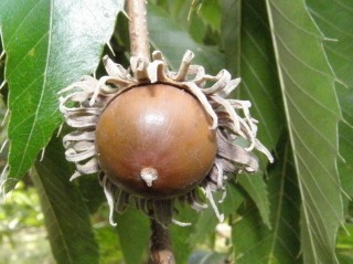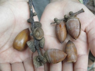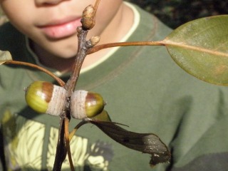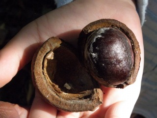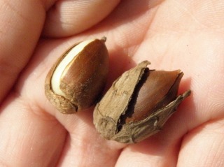 【左】匂いを嗅いでいます。  【右】おやつになるシイの実です。