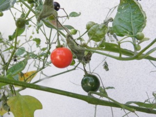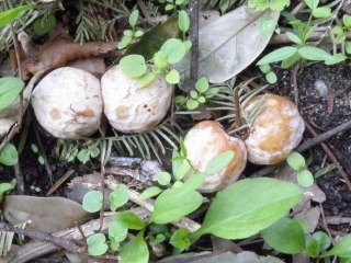 【左】早速、色々な木の実を拾いました。  【右】クサグモに声をかけています。(声の振動で獲物と間違えて出てきます)