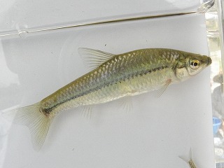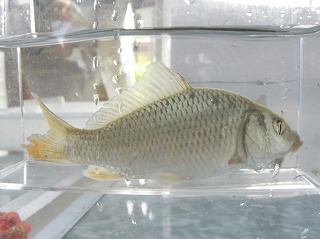 【左】コイ     【中】ブルーギル(特定外来生物)    【右】カダヤシ(特定外来生物)
