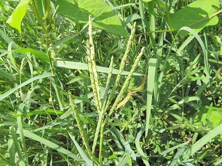 【左】イヌホウズキ    【中】オオカナダモ   【右】左…ケイヌビエ右…イヌビエ。