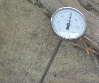【左】アイシン半田工場のビオトープ記念碑  【右】発酵熱測定用温度計(食堂から出た廃棄物の分解発酵)