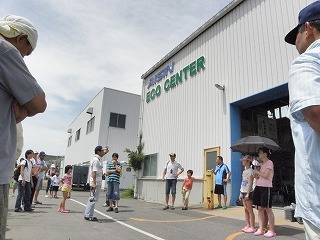 今回の観察会にアイシン精機半田工場が協力したいと主催者に申し出があり、市民(一般参加者)、行政、企業、NPO(知多自然観察会)の四者コラボレーションが実現しました。アイシン精機からは冷茶の提供および午後からのアイシン敷地内のビオトープへの放流参加者にはお弁当の提供がありました。環境課からは、テントの設営、頑丈なタモ網、机、水槽、バケツ、真水120リットル(20リットル×6缶)などの提供がありました。