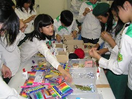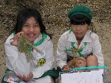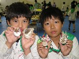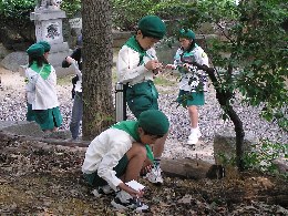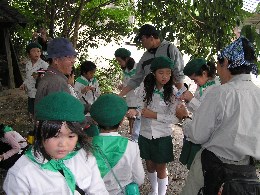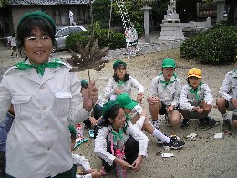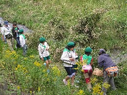 【中】明徳寺川の河川敷で午後の工作材料を採集しています。