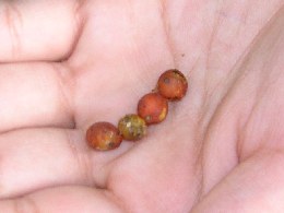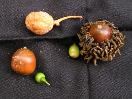 【中】木の実、ひとつ。イチョウ、アベマキ、アラカシ、クスノキです。