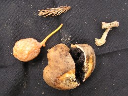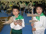 【右】なにかにおいがするもの。スギの葉、イチョウ、ヒメカタショウロ(キノコ)。