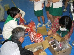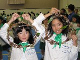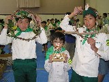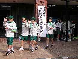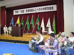 【中】壇上に団旗が飾られ、開会式の始まりです。