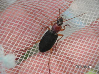 【左】セアカヒラタゴミムシ(花壇付近の草むら) 【中】ショウリョウバッタ(花壇の草むら) 【右】オンブバッタ(花壇付近の草むら)