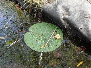D希少植物・動物コース……学校の観察池にオニバスなど水の生き物を観察しました。
