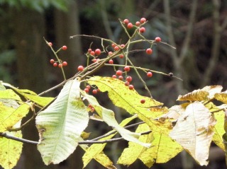 【右】黒い実はナンジャモンジャ(ヒトツバタゴ)