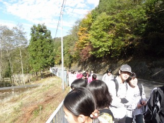 【左】元気良く出発  【右】美しいモミジの下を通過