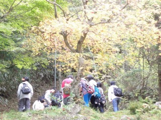 紅葉の季節を迎え、面の木の落葉樹が色づきました。天気も上々で絶好のハイキング日和になりました。面の木の自然を観察しながら元気に井山に向かいました。 山は秋が深まり気温が低くなった関係から昆虫あまり出会うことは出来ませんでしたがたくさんの木の実を観察することが出来ました。(記・降幡)
