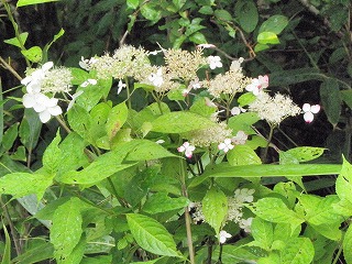 シシガシラ、ニガナ、ニガイチゴ、ヤマアジサイ、ダイコンソウ、ミゾホウズキ、フタリシズカ、モミジバハグマ、ウワバミソウ、オカトラノオ、イワガラミ、ウツボグサ、オオズミ、オトコエシ、ヨツバヒヨドリ、ヤマホタルブクロ、ヤマトウバナ、タマアジサイ、ノリウツギ、トリアシショウマ、オトギリソウ、シロバナイナモリソウ、クジュアクシダ、バイカツツジ、サワギク、ウバユリ、ツチアケビ、ウリノキ、アカバナ、シモツケ、マタタビ、サルナシ、ムラサキシキブ、ノアザミ、マツムシソウ、ノハナショウブ、クサイチゴ、マユミ、ガマズミ、カマツカ、ナルコユリ、チダケサシ、ウワズミザクラ、イヌザンショ、チジミザサ、キツリフネソウ、バイケイソウ、シロモジ、クロモジ
