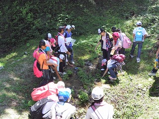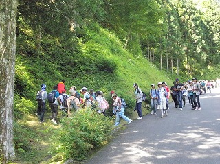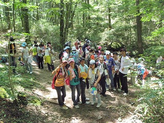 開会式の後、班別に面の木峠に向かいました。それぞれ和やかに新しい発見をしながら面の木峠まで元気よく楽しい自然観察ハイキングが出来ました。そんな中、色々な生き物に出会うことが出ましたので生き物の一部をWebで紹介することにしました。今回紹介した生物は、第2本館上のキャンプ場で見られた生き物と教育センターから位山川沿いを登り面の木峠までに見られたものの一部です。専門家が同定したものではありませんので掲載した生き物の名前に間違いがあると思います。修正すべきところがありましたら連絡をしてください。この写真が参加された皆さんが面の木の自然を振り返る資料となることが出来れば幸いです。(記・降幡 )