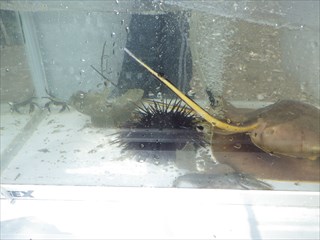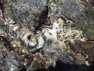 ・アラムシロガイ、ヒザラガイ、スガイ、オオヘビガイ、ミズクラゲ、バフンウニ、ムラサキウニ、クモヒトデの仲間、ウミウシの仲間…など