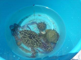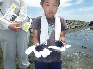また、得意になって、ムラサキウニをたくさん捕っていた子もいた。これも、潮がよく干ったことでできたことである。