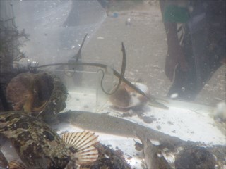 ・クジメ、セイゴ、アカエイ、ヒメハゼ、ナベカ、ヨウジウオ、アミメハギ、クロウシノシタ(シタビラメ)、ギンポの仲間(2種)、ヒメイカ(?)、タツノオトシゴ…など