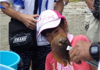 一方、よく干っていたので、アマモ場でも子どもたちが活動でき、ヨウジウオやタツノオトシゴ、ヒメイカ(?)を捕まえた子も、まま、いた。