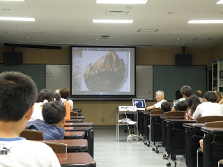 野間荘で昼食を獲った後、午後1時から1時間ほど、森田指導員から海の生き物についての講義がありました。質問を交えながら、和やかな雰囲気ですすめられましたが、小さな子ども達も立派な態度で講義に参加していてすばらしいと思いました。