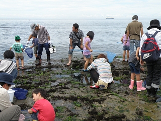 名古屋市の互助会で教養講座として募集したところ、あっという間に定員の40名に達したほど人気の高かった企画でした。それだけに参加されたみなさんは、大変に熱心に採集、観察に取り組まれ、いつもの冨具崎の観察会以上の生き物と触れ合うことが出来たと思います。