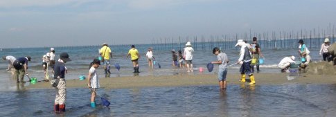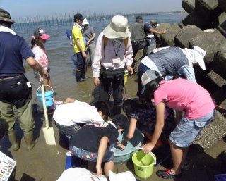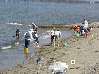 アサリ、イボニシ、アラレタマキビ、コガモガイ、コウダカアオガイマガキ、ヒザラガイ、マガキ、