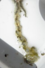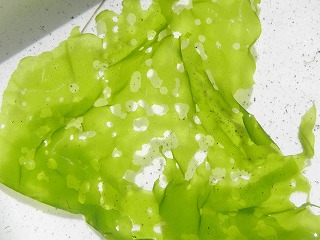 【左】スゴカイ(釣り屋さんではミノムシ) 【中】アマモ(別名:リュウグウノオトヒメノモトユイノキリハズシ、古くなると緑→黒) 【右】アナアオサ