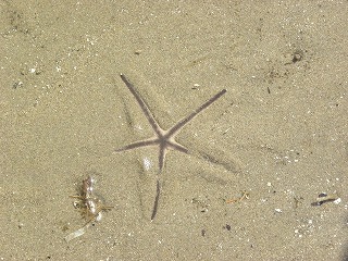 【左】スナヒトデが砂に潜っていきます 【中】ほとんど見えなくなりました 【右】マハゼ