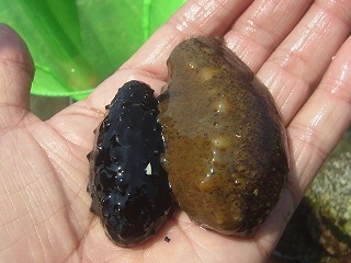 【左】マナマコの色違い 【中】サンショウウニ 【右】バフンウニ