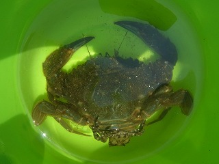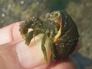 【左】ケアシホンヤドカリ 【中】イシガニ 【右】イワガニにフクロムシが寄生しています