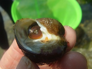 【左】キクノハナガイ 【中】イボニシ 【右】イボニシの卵