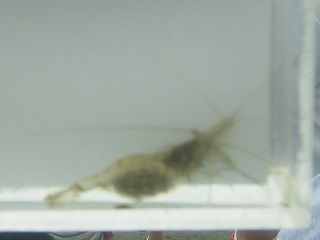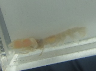 【左】卵からアオリイカの赤ちゃんが出て来ました。         【中】イソヘラムシ         【右】エビ