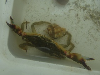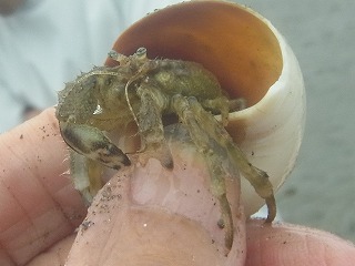 【左】スナモグリ            【中】ホンヤドカリ           【右】イシガニ
