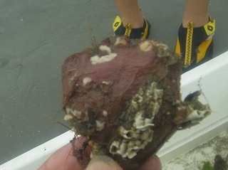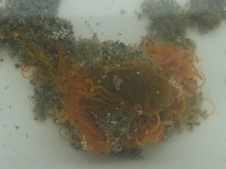 【左】ヂダイイソカイメン。右、死がい          【中】タテジマイソギンチャク         【右】チロリというゴガイの仲間(釣り餌)