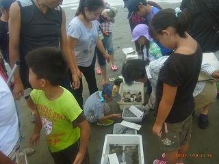 くもりで気温もあまり上がらず、家族の皆さんはの皆さんは快適に磯の生き物を楽しむことが出来ました。(記・降幡)
