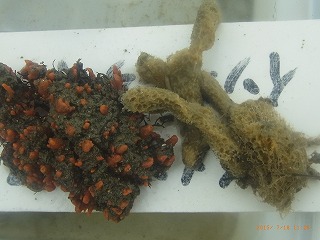 【左】ミズヒキゴカイ         【中】ツバサゴカイ(クロムシ)の卵         【右】ヒザラガイ