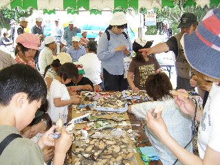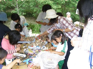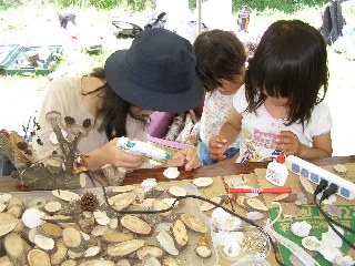 【中】次々、自然物工作コーナーに家族が訪れました。