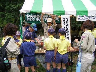 【左】自然観察で森の大切さを話し合っています。