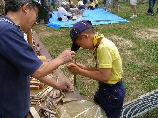 【左】こちらは、わりばしを利用しておもちゃを作っています。