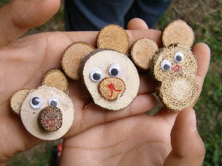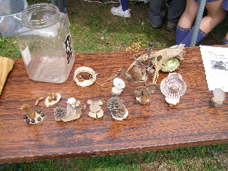 【左】木の実と貝殻を使って作った作品です。
